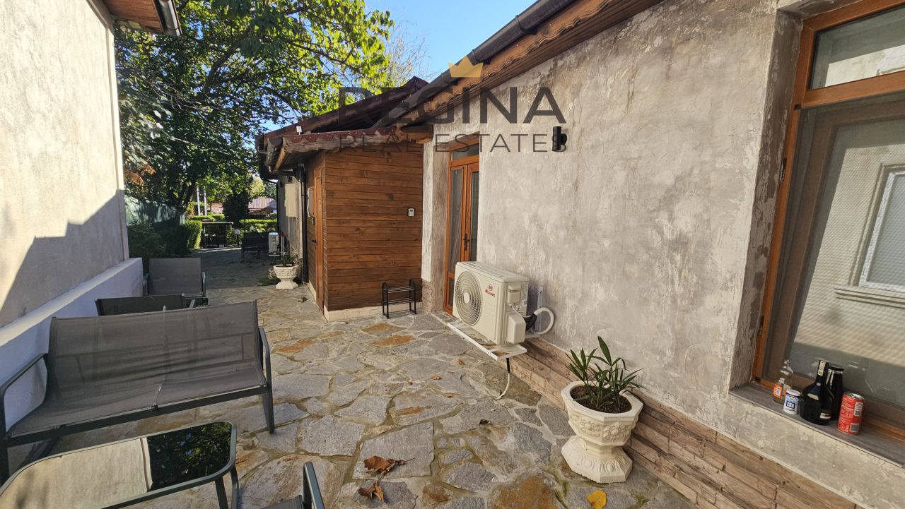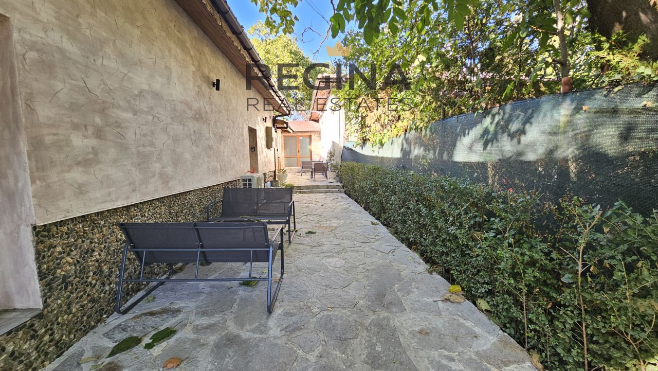 Дворното място е с площ 218кв.м, красиво озеленено, добре поддържано и има кътче за отдих.